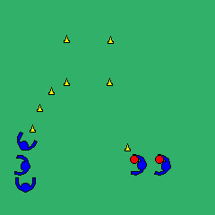 Pas de déplacement avec le frisbee Pas le droit se faire une passe à soi-même Défenseur sur porteur à 1m, début du décompte Jouer sur des espaces de 60X40m, 7/7 |