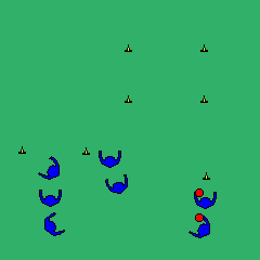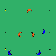 Pas de déplacement avec le frisbee Défenseur à longueur de bras, décompte régulier Changement de camp après un point Frisbee attrapé simultanément, avantage à l'attaque Jouer sur des espaces de 60X40m, 7/7 |