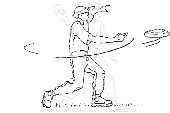 LE REVERS (backhand): La prise: placez le pouce sur la surface supérieur du disque et les autres doigts à l'intérieur (certains placent l'index sur le bord extérieur du disque) Le lancer: de profil, l'épaule droite (pour les droitiers) face au partenaire, les genoux légèrement pliés. Amenez le disque à hauteur de l'épaule gauche. En déroulant horizontalement le bras, lancez le disque d'un mouvement sec du poignet. |